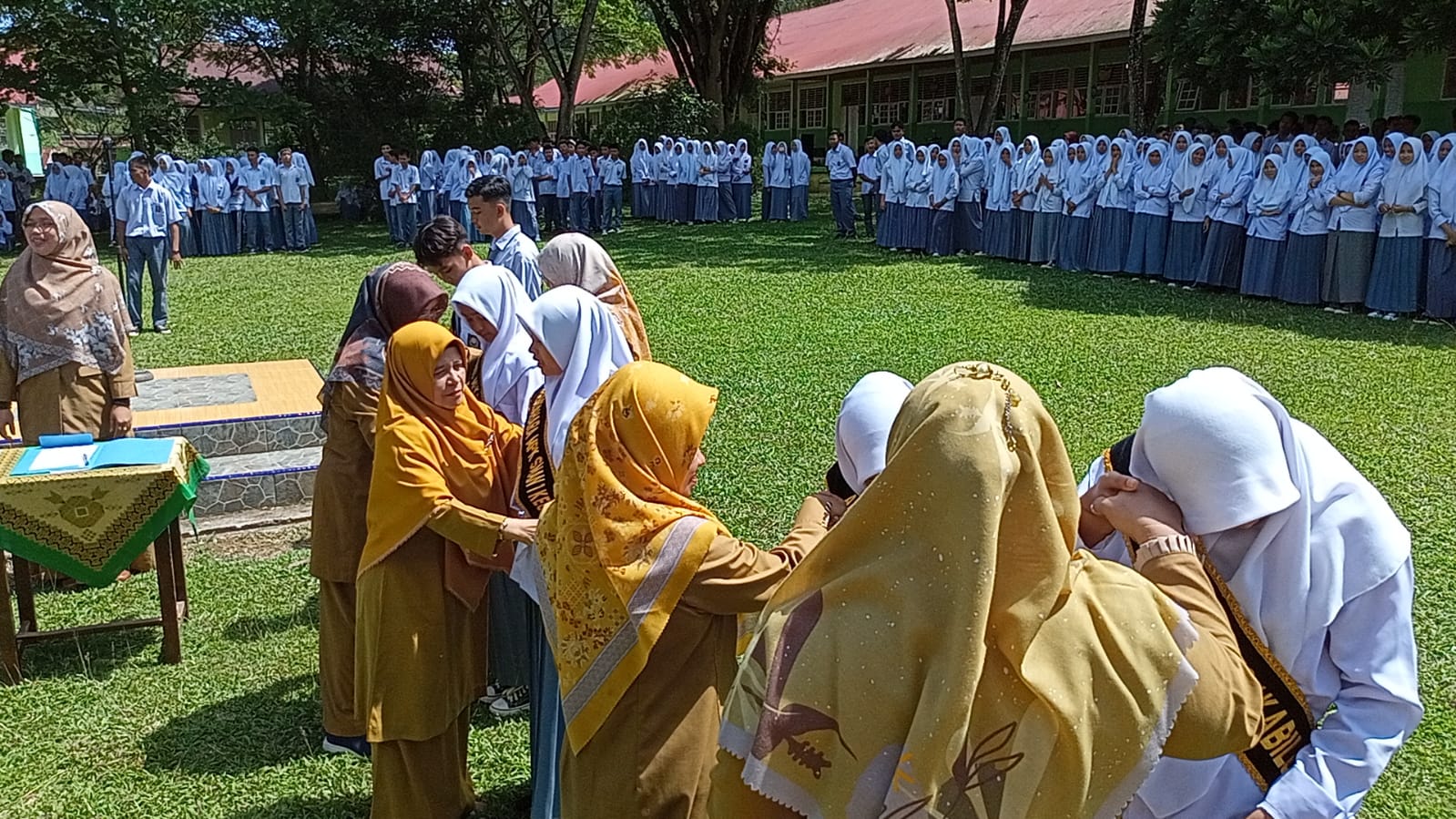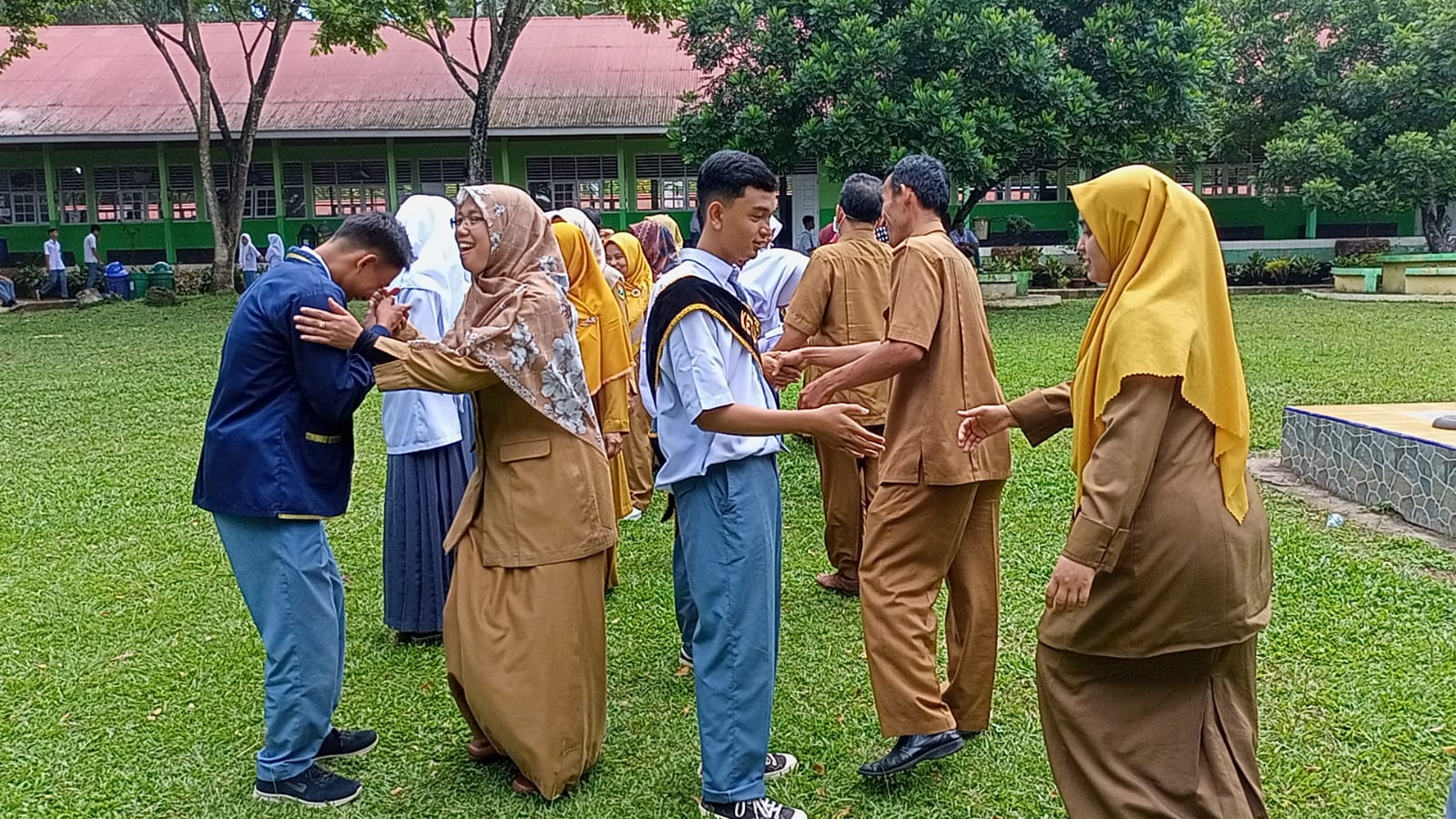 Guru-Guru bersalaman dengan pengurus MPK Lama dan Baru setelah acara pelantikan selesai